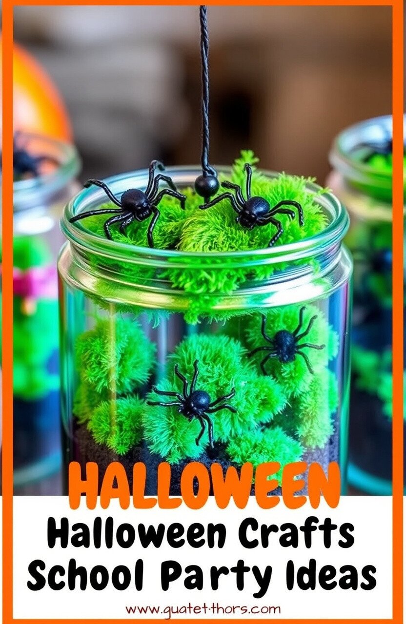 Build a mini terrarium filled with fake spiders and moss for a creepy centerpiece. Use glass jars or vases and fill them with soil, fake moss, and plastic insects.