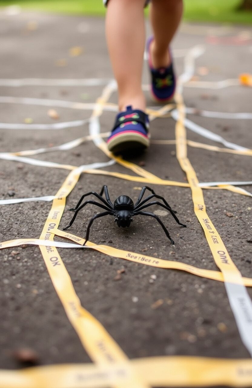 Create a “web” on the ground using tape, and challenge kids to walk along it without stepping off. Enhance the game by adding obstacles like fake spiders along the path.
