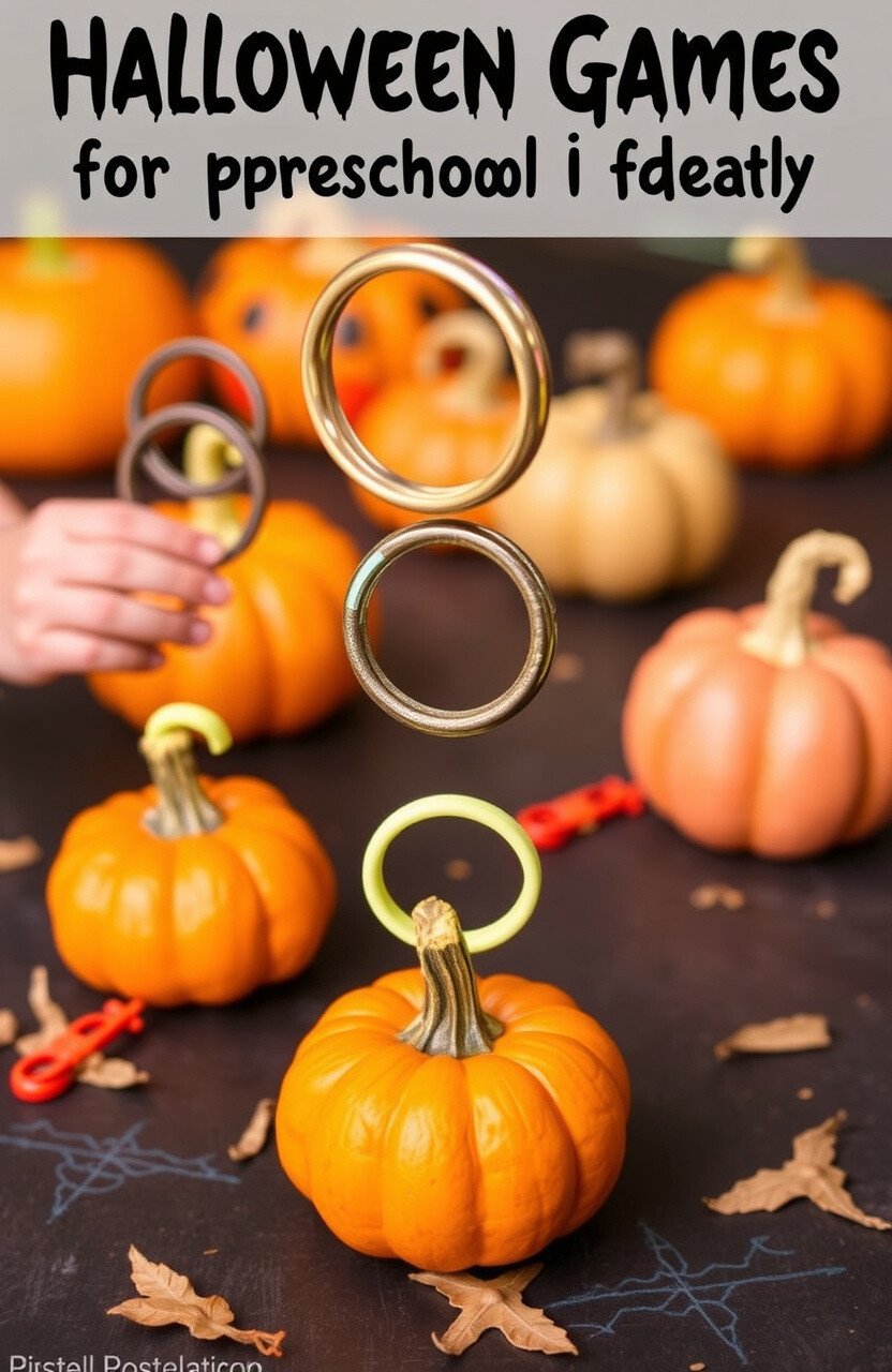 Use small pumpkins as the base and toss rings onto their stems. Decorate the pumpkins with paint or markers for extra flair.