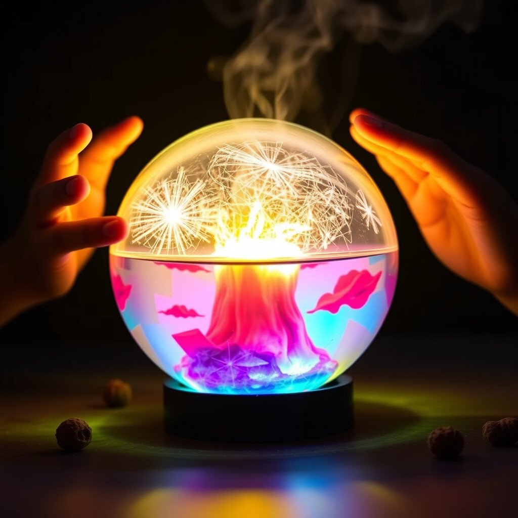 Use a clear plastic ball filled with colored water to create a crystal ball effect. As the volcano erupts, the ball appears to glow.