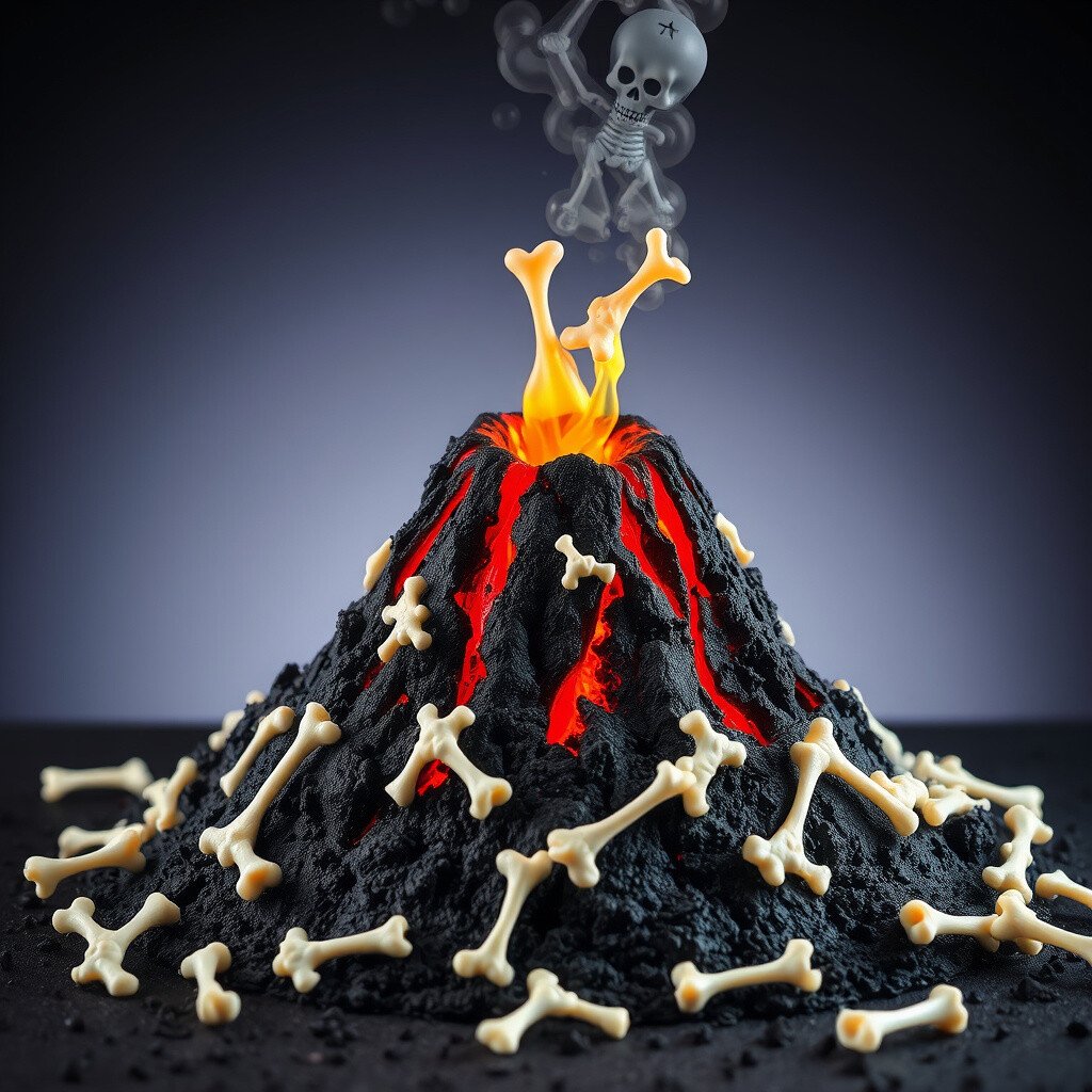 Scatter small plastic bones around your volcano for a boneyard effect. As it erupts, the bones become part of the lava flow.