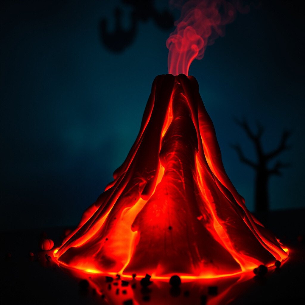 Incorporate a small black cat figure into your volcano scene. As the volcano erupts, the cat appears to leap away from the lava.