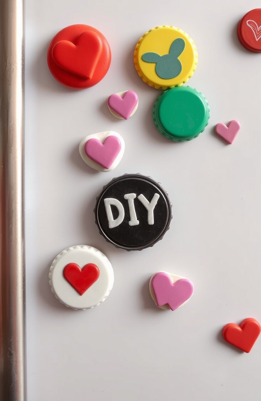 Create custom magnets with clay or bottle caps. A fun way to decorate your fridge.
