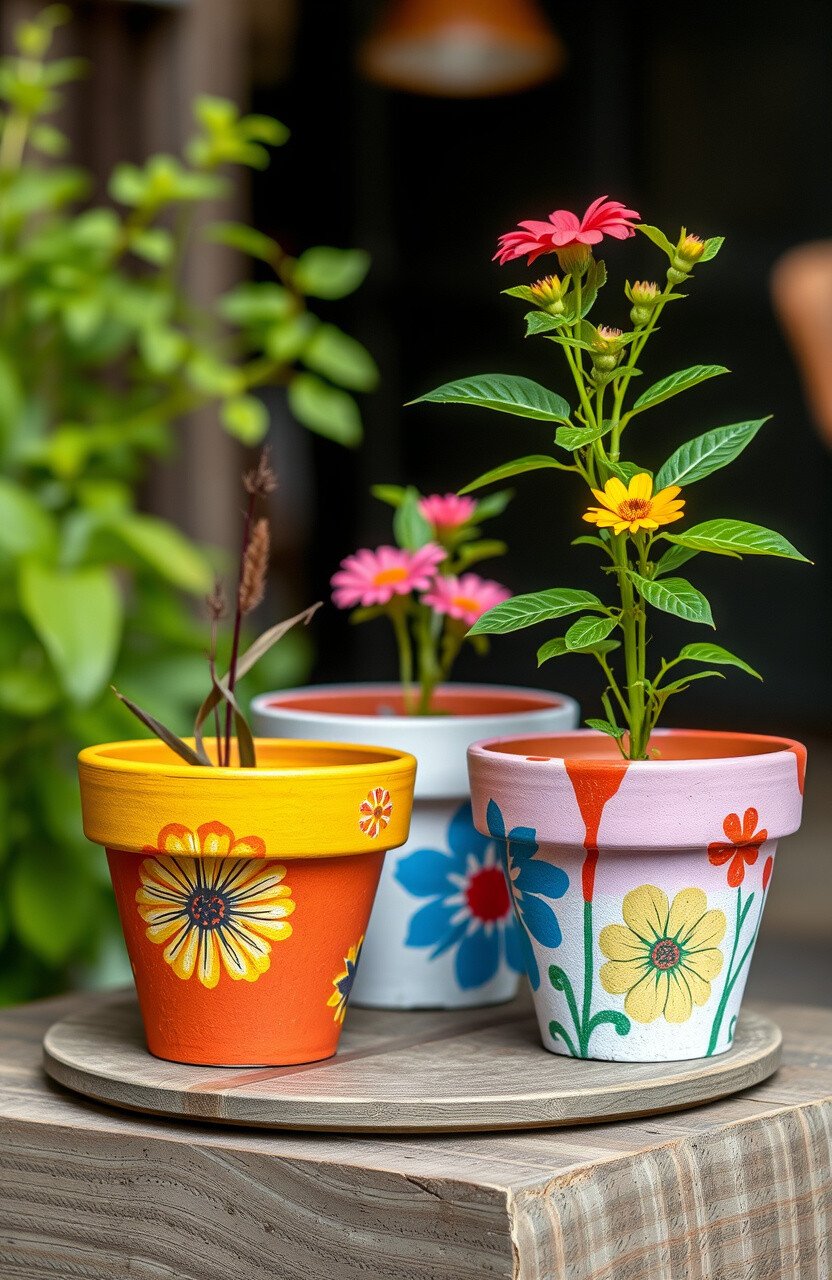 Transform plain terracotta pots into colorful masterpieces. Paint them to match your style.