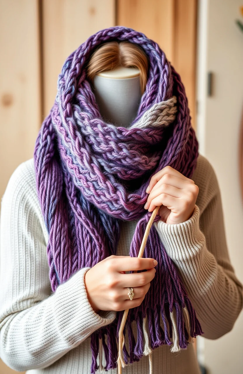 Knitting a scarf is a cozy and practical craft. Choose your favorite yarn colors and patterns.