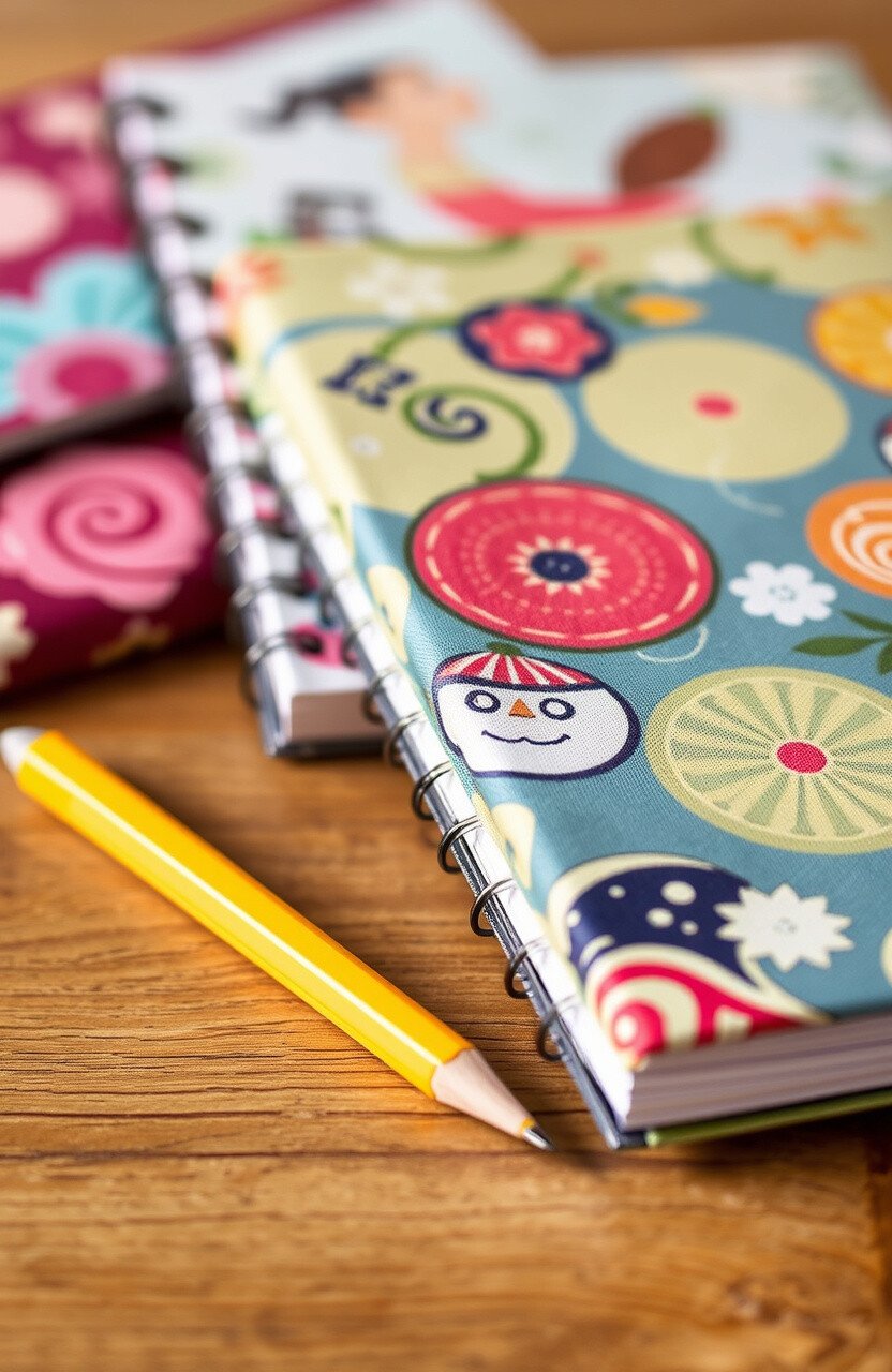 Design custom covers for your notebooks. Use fabric, paper, or paint for a unique look.