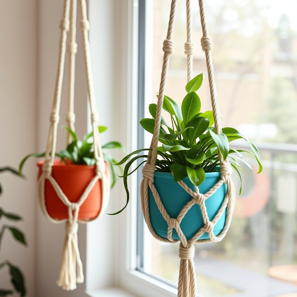 Macrame planters are perfect for adding texture and warmth. They’re not just planters; they’re art. Choose a vibrant pot to pop against the neutral cords.