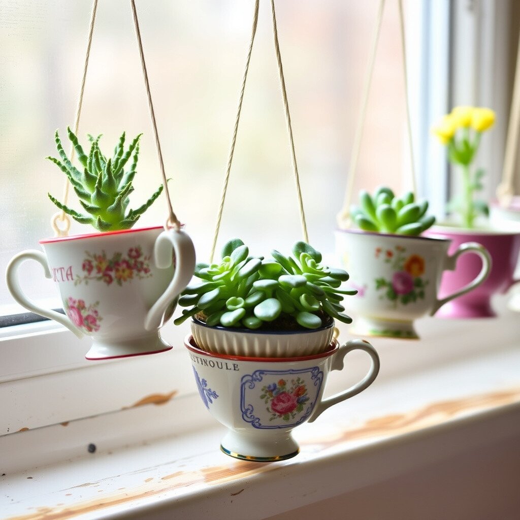 Give old teacups a new life as planters. They’re charming and elegant, perfect for a touch of vintage flair. Imagine a row of dainty cups on your windowsill.