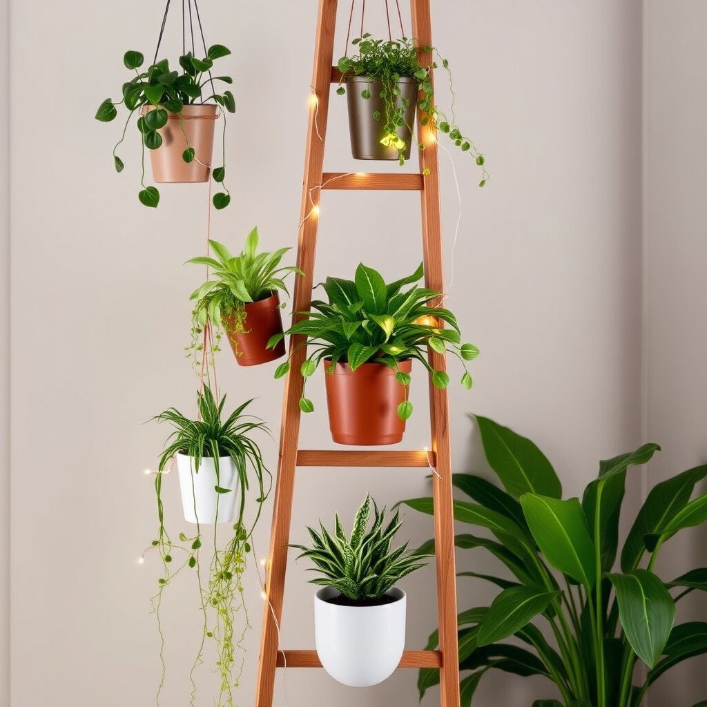 A ladder planter adds height and drama. It’s perfect for displaying a variety of plants at different levels. Imagine a lush, green waterfall in your home.