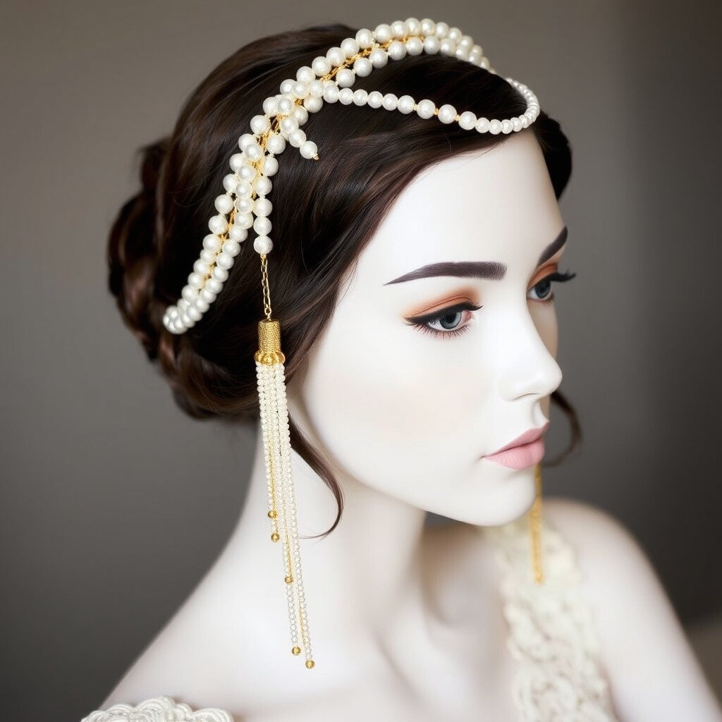 Imagine walking into the party with a headband that screams elegance. The classic pearl and gold combo is timeless, blending the purity of pearls with the richness of gold beading.