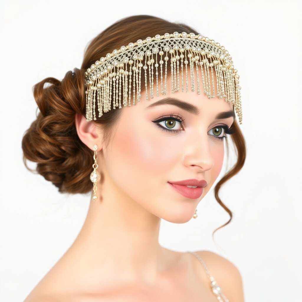Channel the roaring twenties with a Gatsby-inspired headband. This piece sparkles with art deco patterns and beaded tassels that sway with every move.