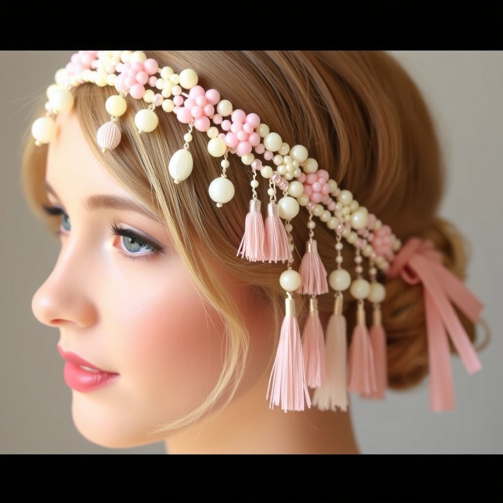 For a softer look, try a headband with pastel beads and tassels. It’s gentle and romantic, perfect for a dreamy prom night.