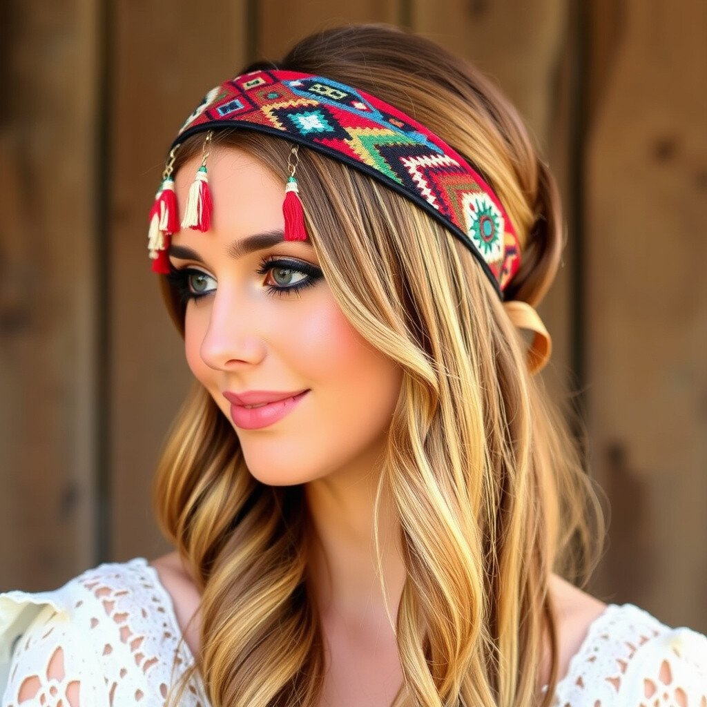 Embrace a tribal feel with a headband featuring bold patterns and beaded tassels. It’s for those who love unique cultural influences.