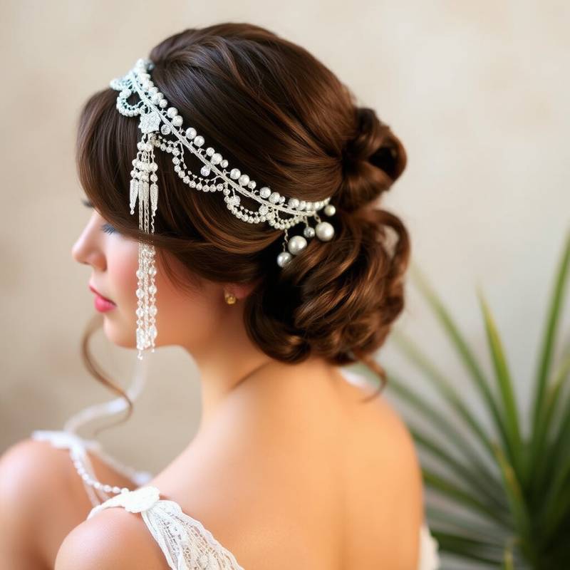 This headband combines delicate pearls with shimmering tassels for an elegant touch. It’s perfect for those who adore classic beauty.