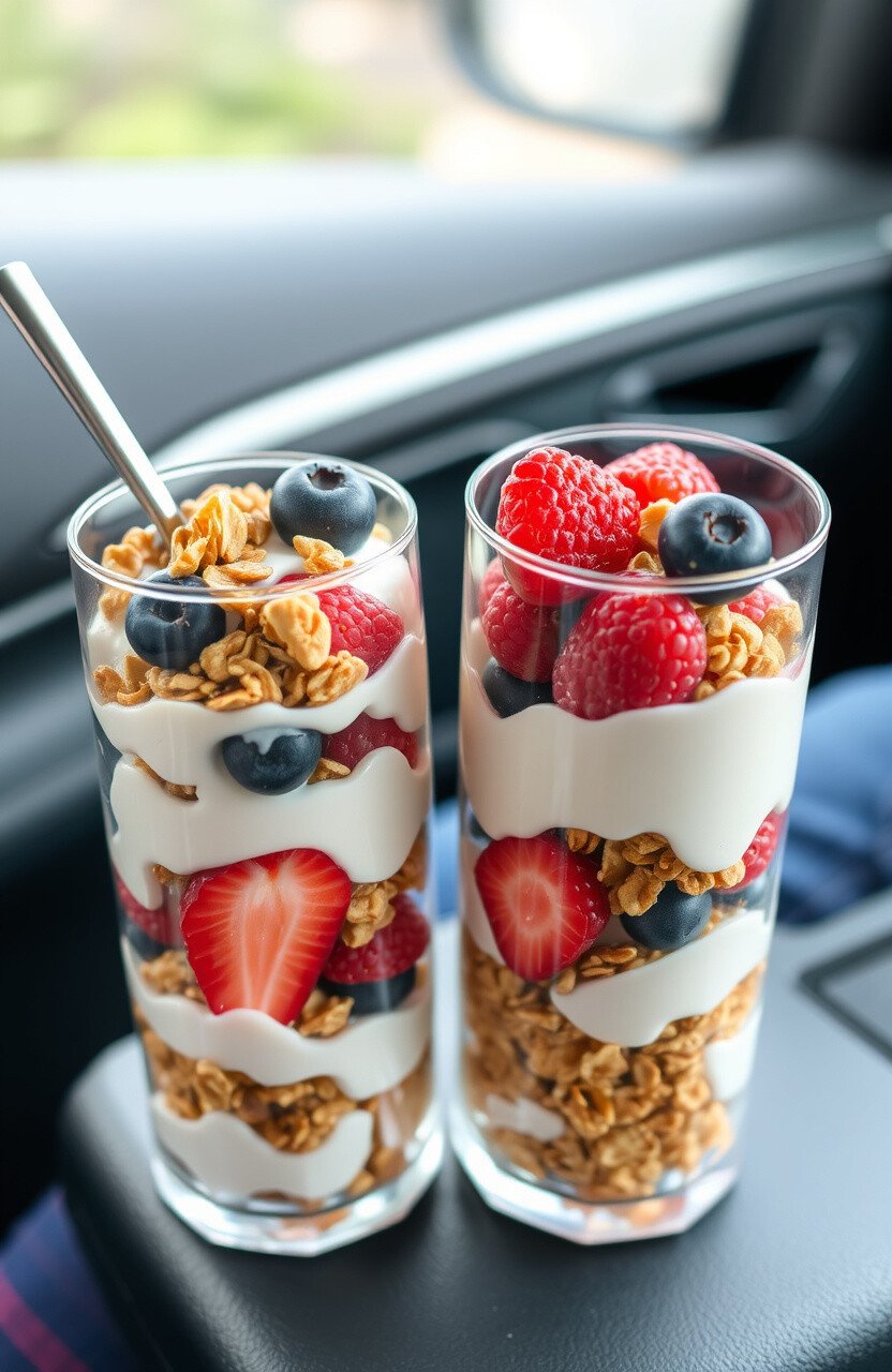 4. Greek Yogurt Parfaits Indulge in creamy Greek yogurt layered with granola and fresh berries. These parfaits offer a perfect blend of protein, carbs, and natural sweetness. They’re not only delicious but also visually delightful.