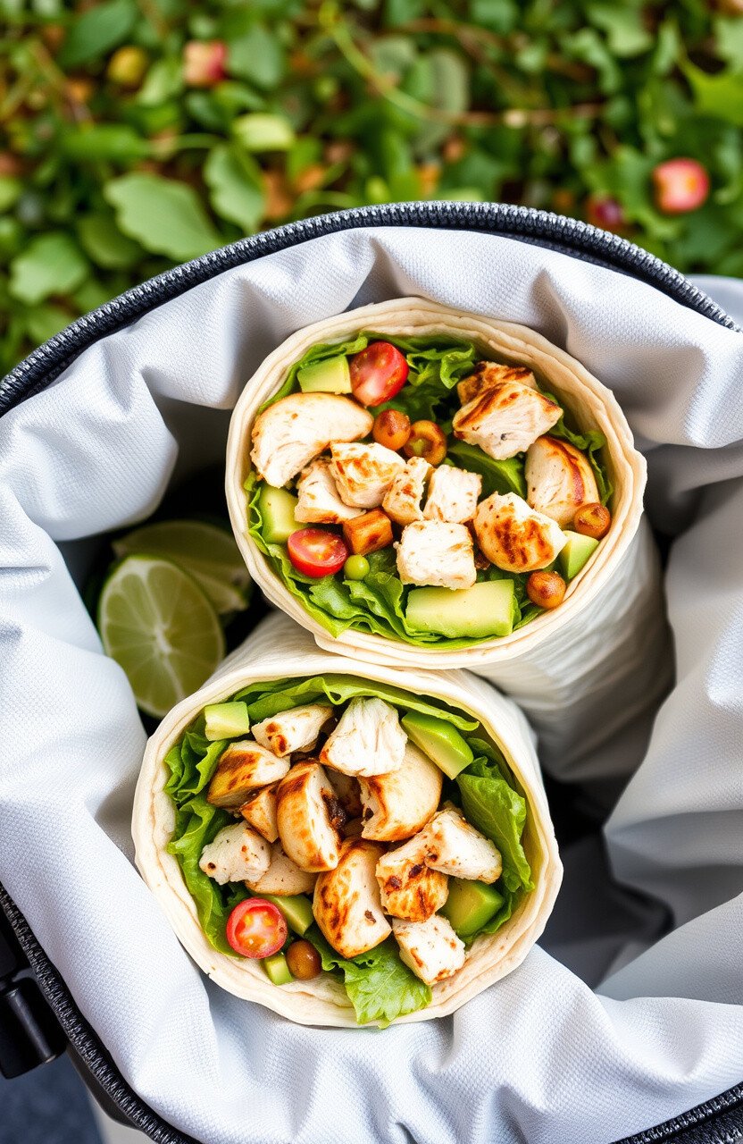 These wraps are like a colorful painting you can eat. They’re filled with vibrant veggies like bell peppers, carrots, and spinach wrapped in a whole wheat tortilla.