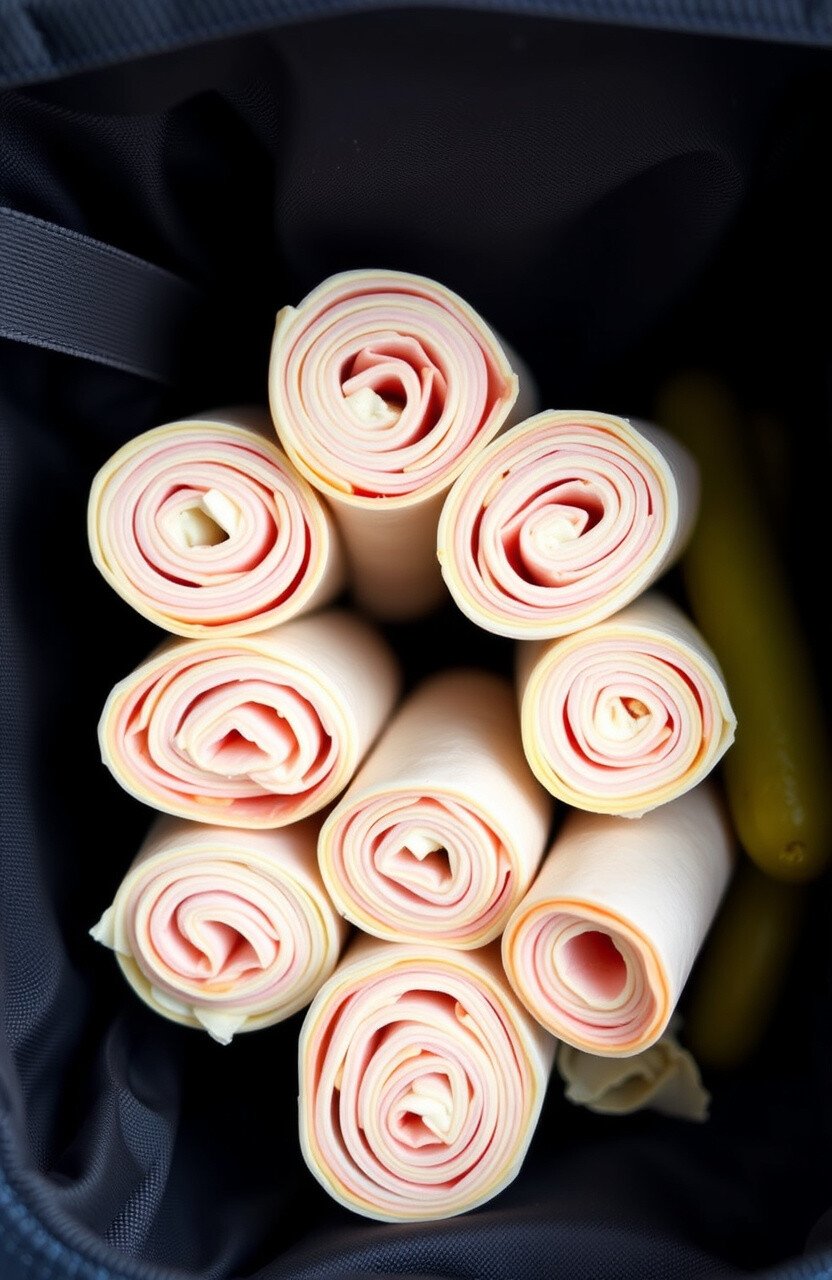 These roll-ups are like the perfect sandwich without the bread. Slices of turkey and cheese rolled together, simple yet satisfying.