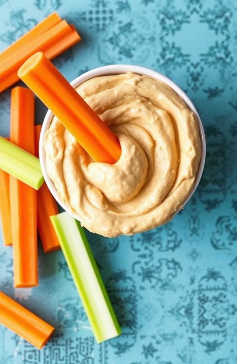 Hummus and veggie sticks are like a match made in snack heaven. Carrot and celery sticks dipped in creamy hummus are satisfying and healthy.