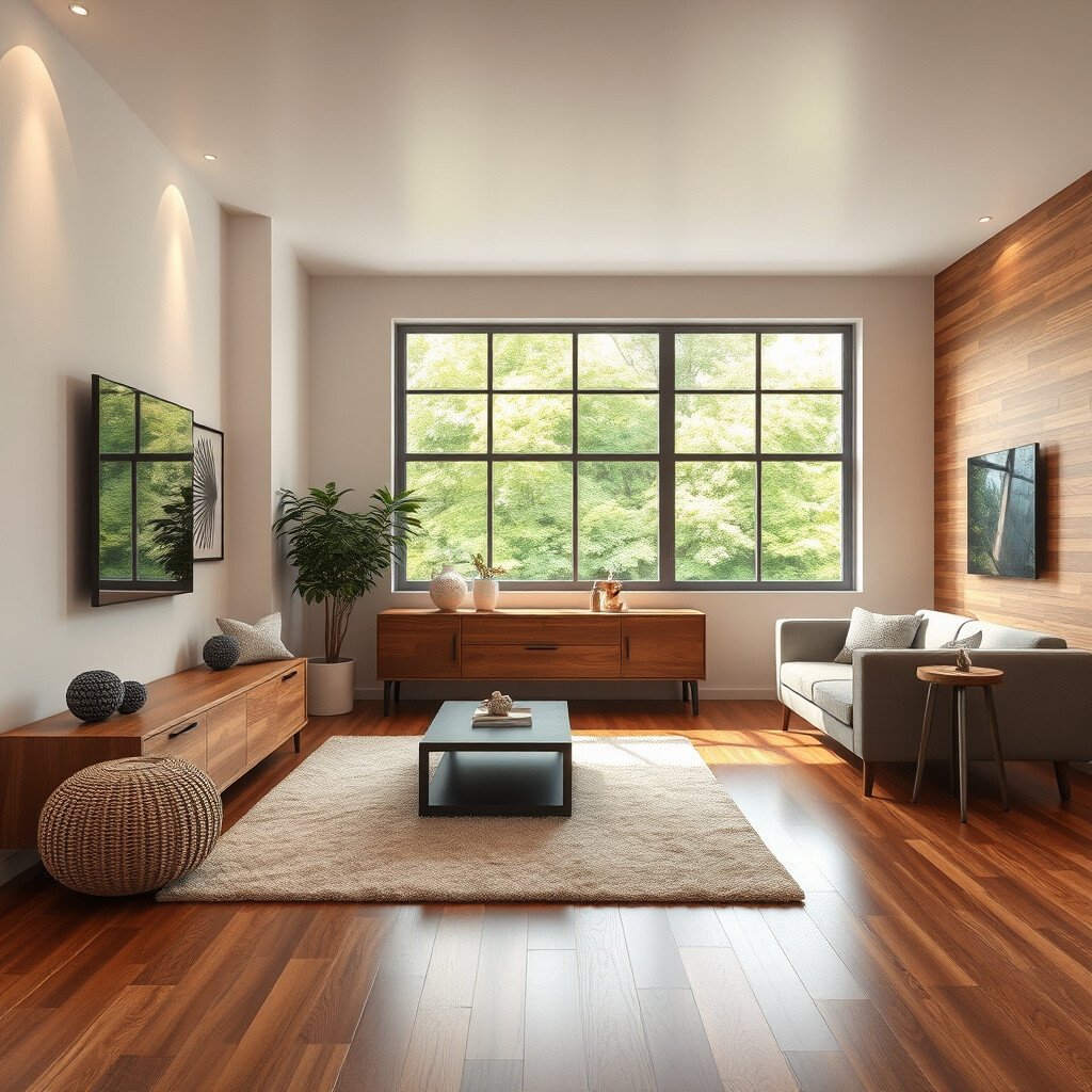 These floors are water-resistant, making them ideal for kitchens and bathrooms too. Add a soft rug for contrast and comfort underfoot. They’re an affordable way to get a high-end look.