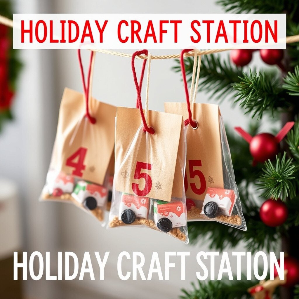 Fill small bags with chocolates or tiny toys, and number them with stickers. Hang them on a string for a festive display.