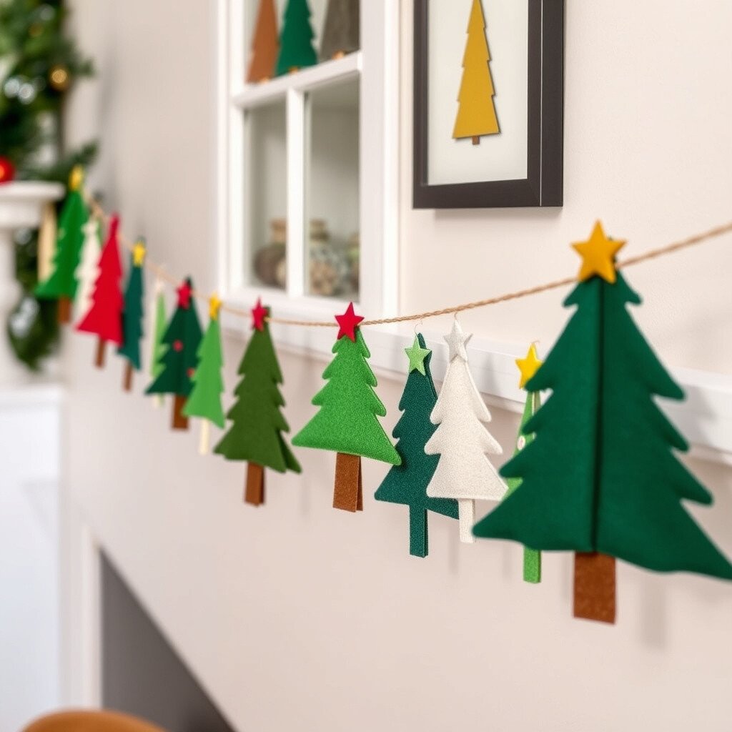 Create a festive garland with felt Christmas trees that adds color and cheer to your home.
