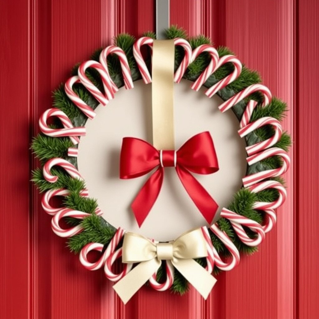 Welcome guests with a candy cane wreath that sweetens up your front door.