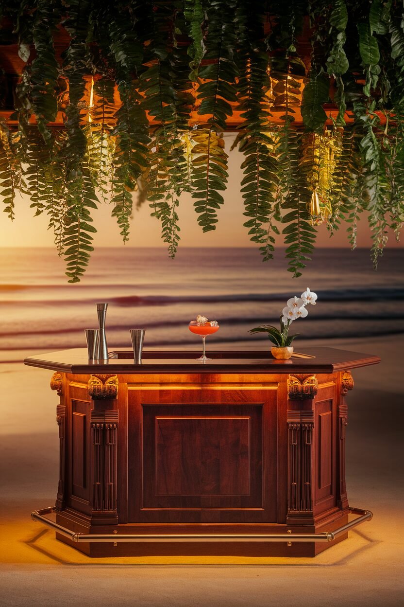 A tropical paradise bar brings the feeling of a beach getaway to your home, perfect for those who love sunshine and cocktails with little umbrellas.