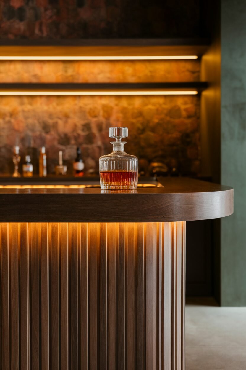 Make it uniquely yours with custom glassware or a statement chandelier. These elements will make your bar feel like a glamorous speakeasy.