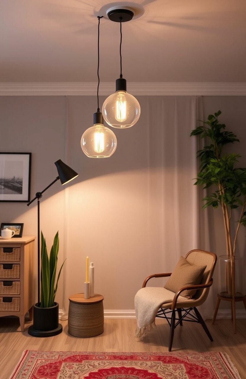 Lighting can change the whole mood of a room. Explore different types of lighting like floor lamps, string lights, or pendant lights.