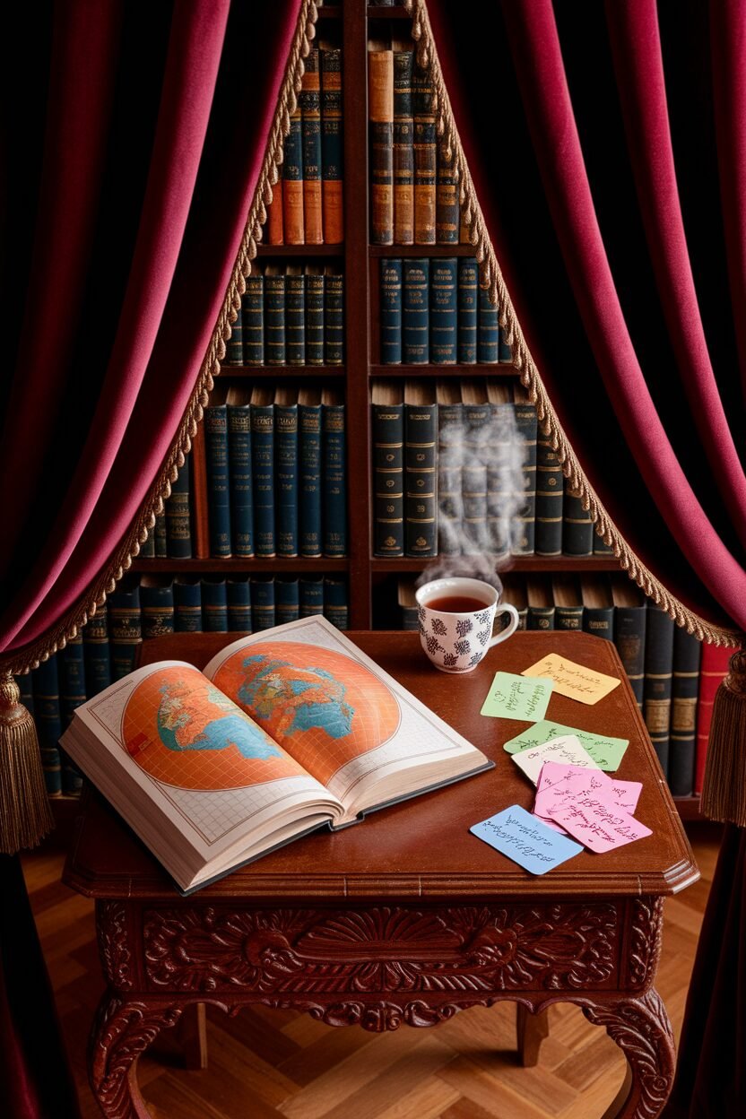 Transform a corner into a portal to the past with historical books and maps. Kids can embark on adventures through time.