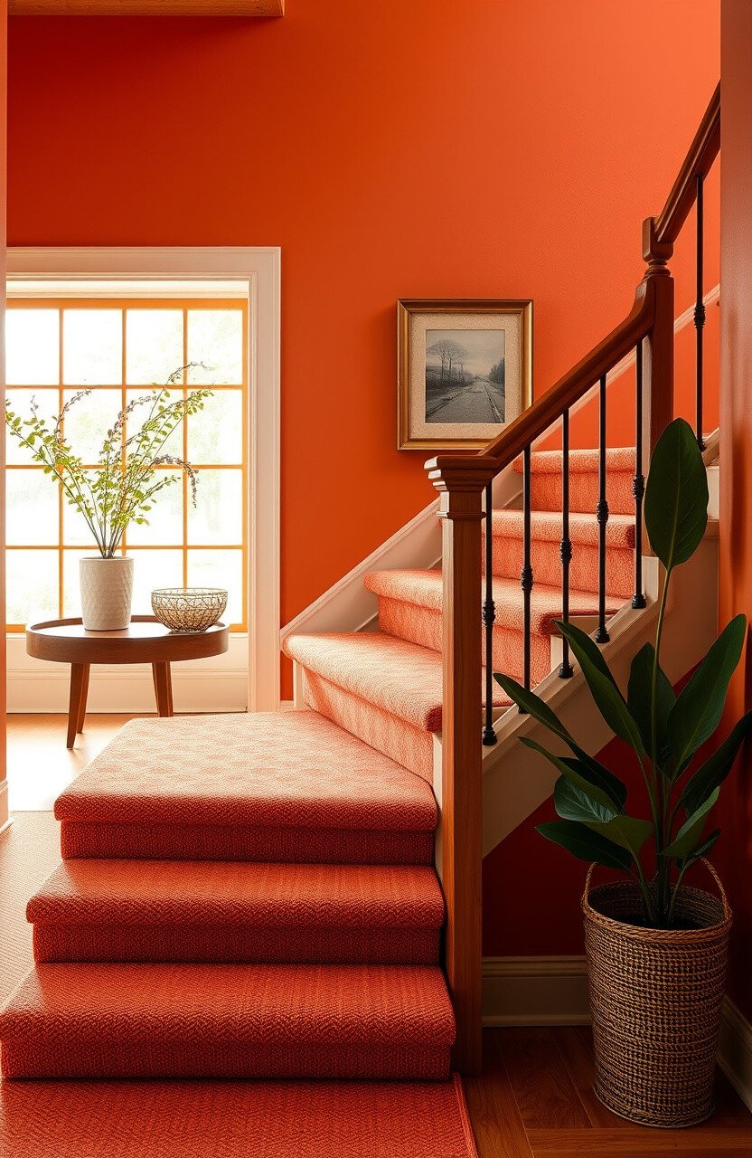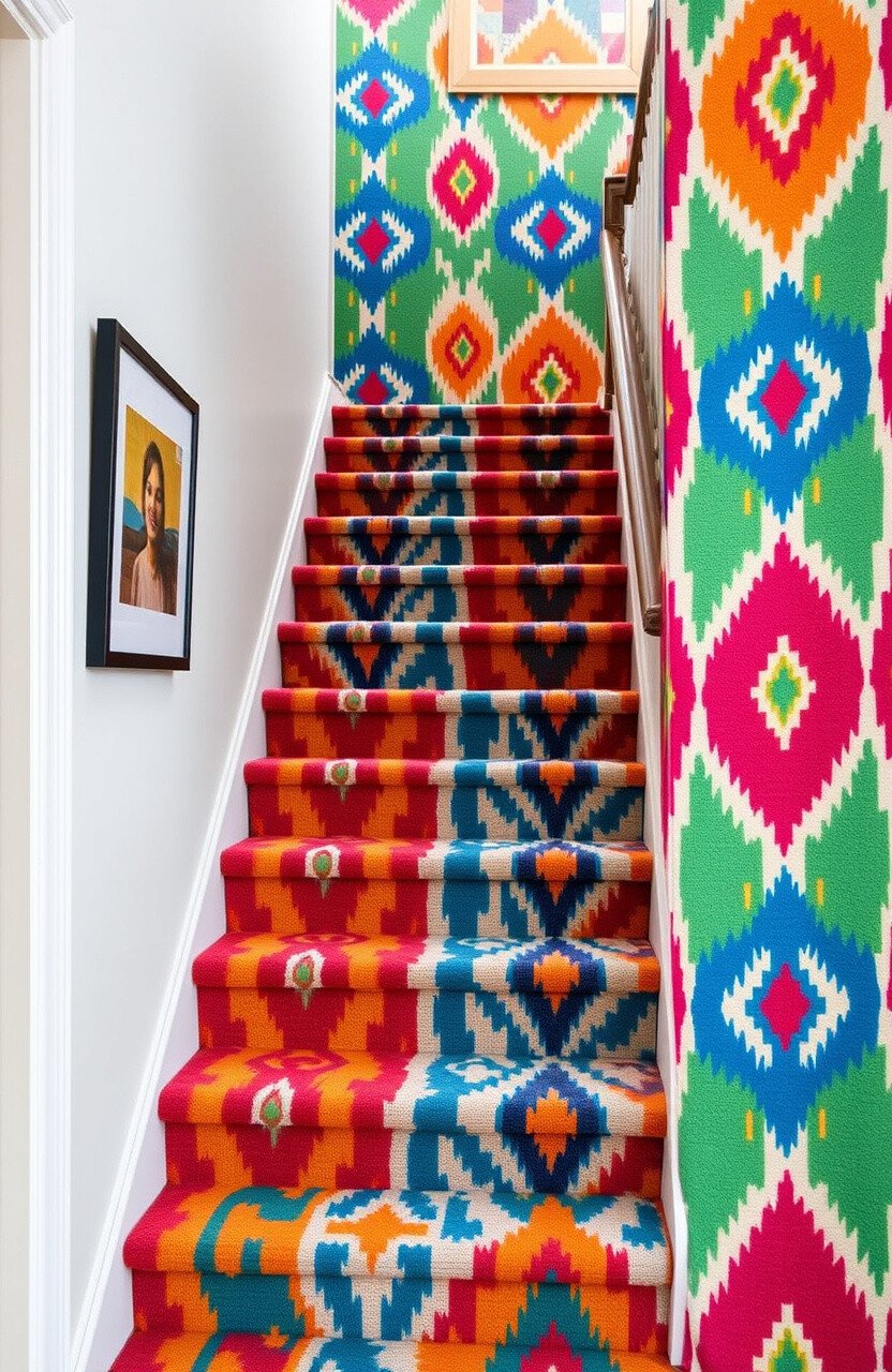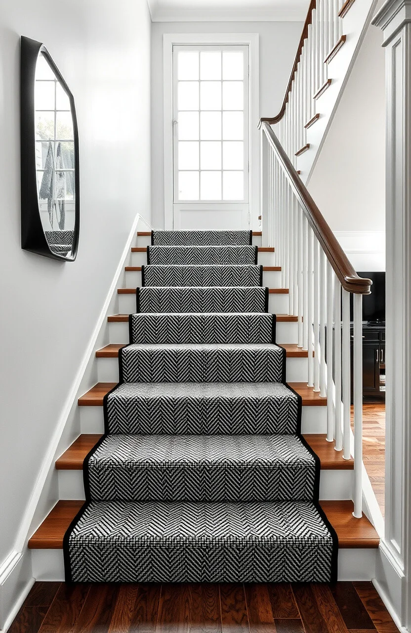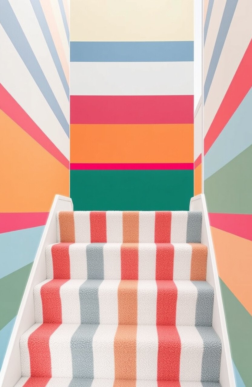 Stripes can make a bold statement on your stairs. They’re perfect for adding a touch of drama.