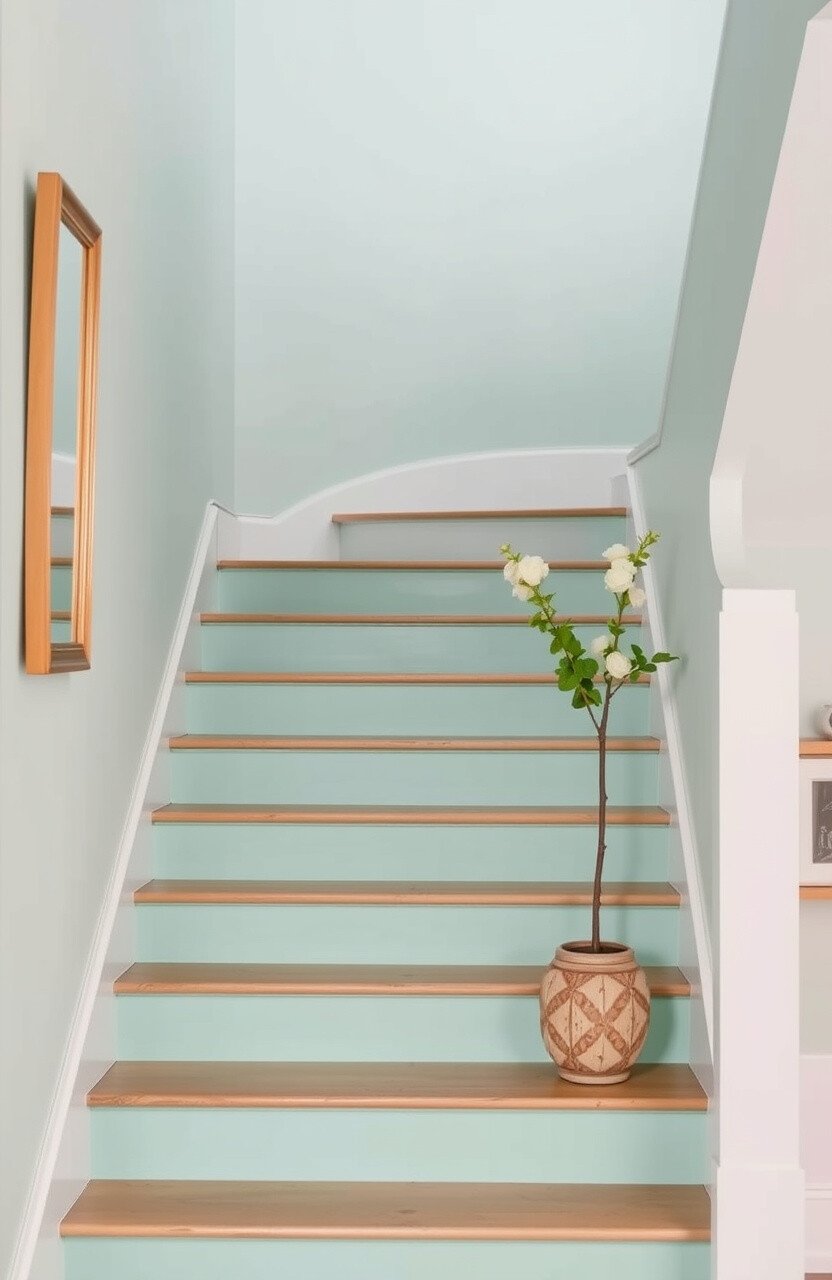 For a touch of whimsy, consider painting each step in a different pastel color. This playful approach can make your staircase a fun and inviting feature, especially appealing in homes with children.