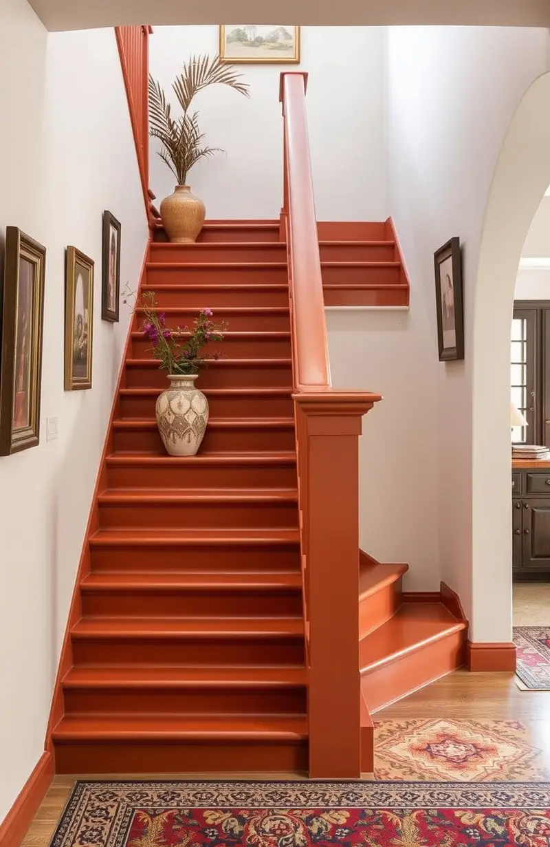 Pair with cool blues or greens for a complementary look, or use neutral tones to balance the vibrancy. Orange stairs are sure to bring a smile to your face every time you use them.