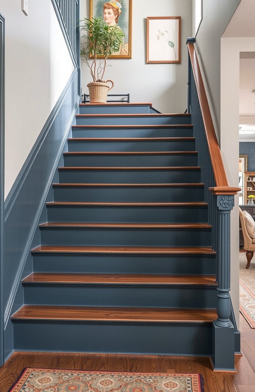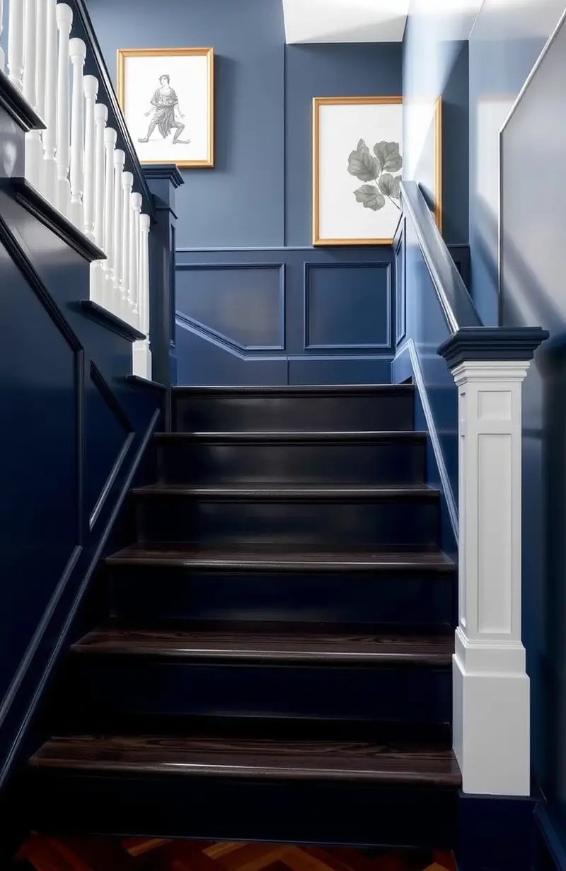 Pair navy stairs with white or gold accents for a truly regal appearance. This color works well in both modern and traditional homes, offering a versatile option for those who appreciate classic style.