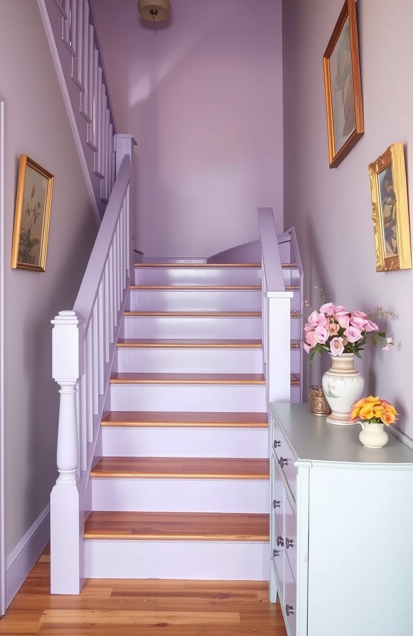 Lavender stairs bring a touch of vintage charm to your home, adding a soft and romantic feel. This gentle hue is perfect for creating a calming and inviting space.
