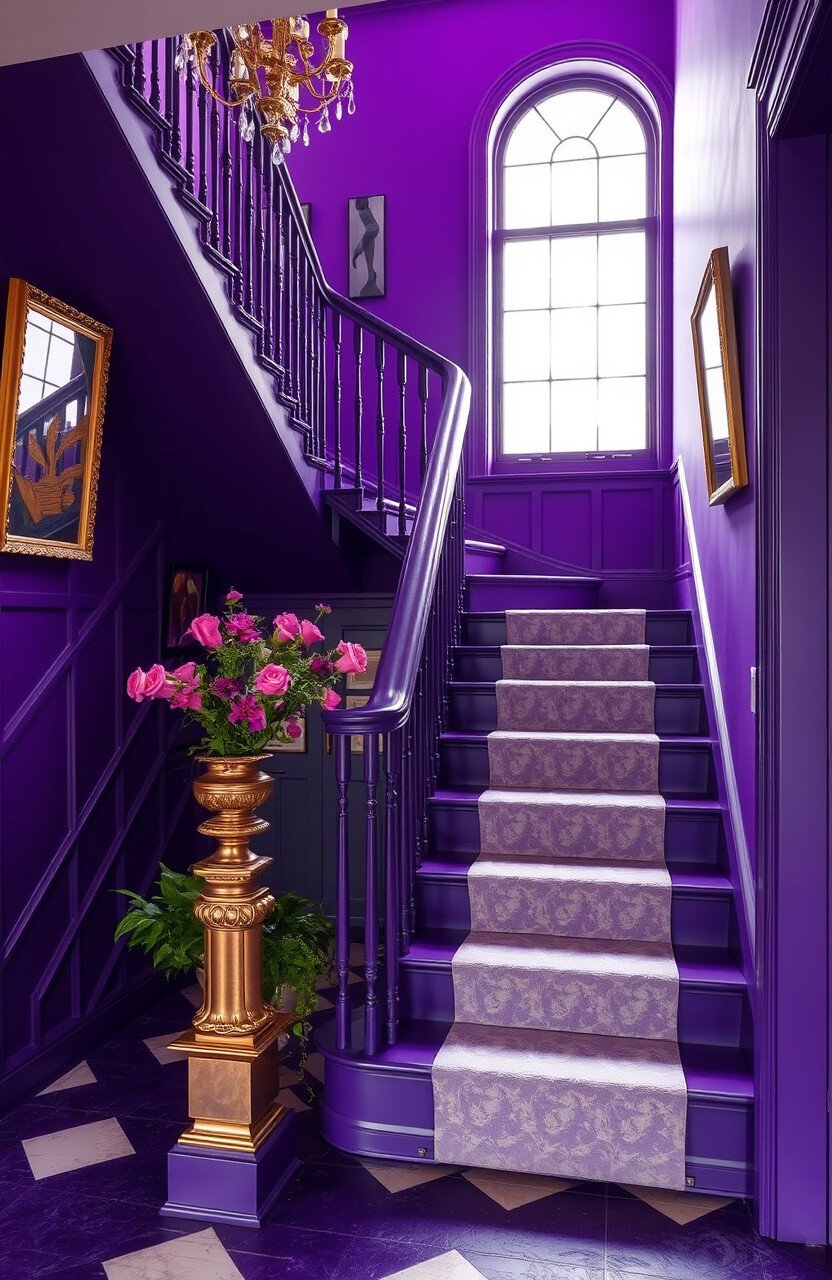 Purple is a vibrant and majestic color that can add a touch of luxury to any staircase. This bold hue is perfect for those who love to make a statement and embrace their creative side.