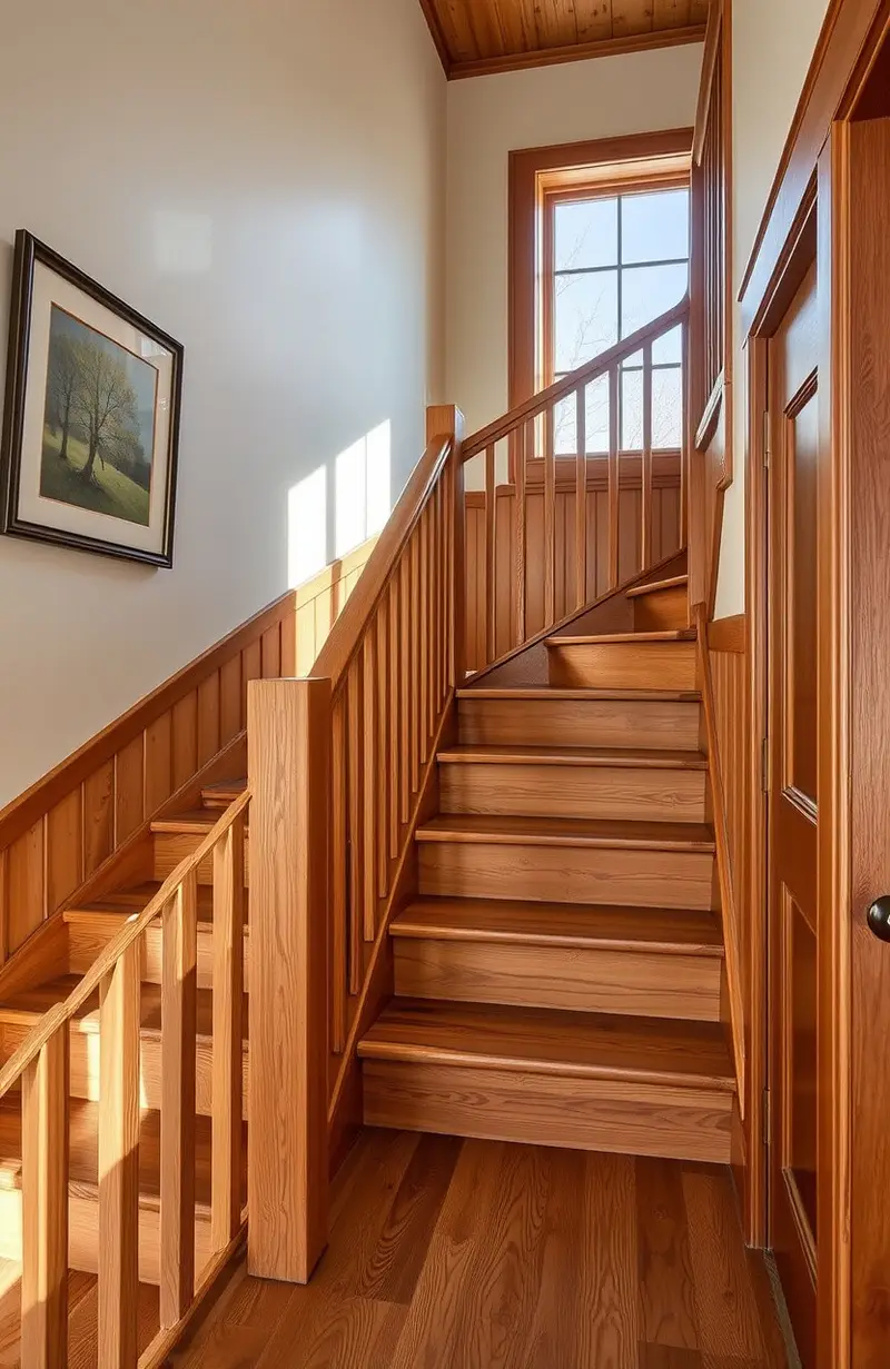 Choose sustainable materials for your wooden stairs. Reclaimed wood and eco-friendly finishes are both beautiful and responsible.