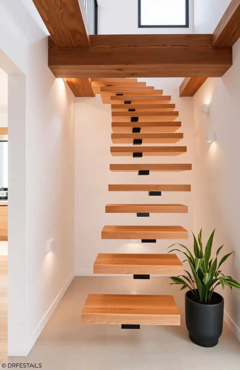 Floating stairs are perfect for contemporary spaces. They’re a unique way to make a statement without clutter.