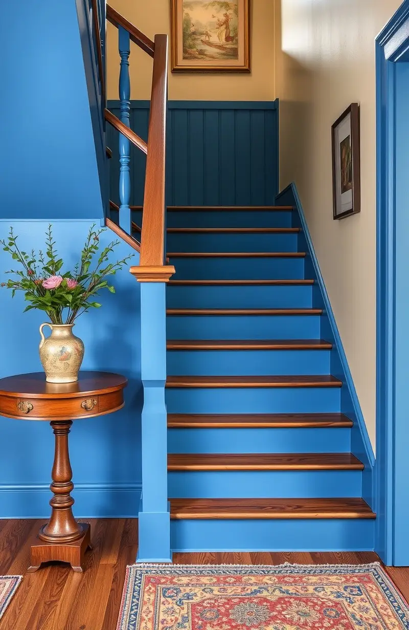 Step out of the ordinary with bold-colored stairs. Painting your wooden stairs in vibrant hues can make them a focal point.
