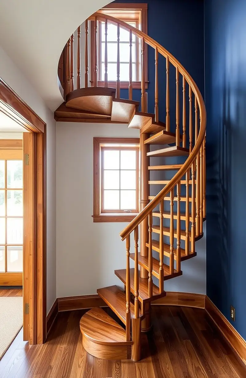 Add a twist to your home with spiral wooden stairs. These space-saving wonders are both functional and stylish.