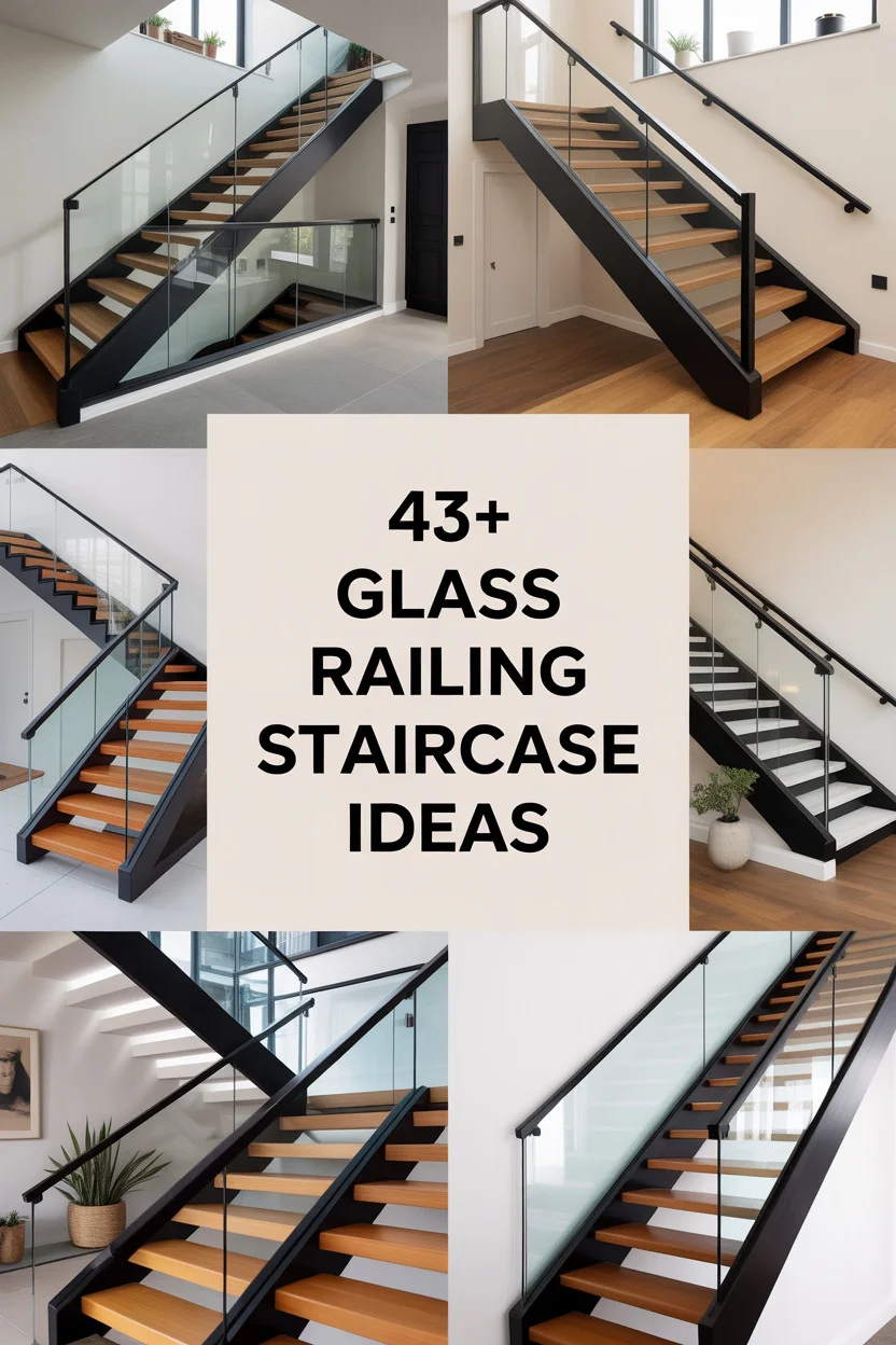Glass railings with black steel accents offer a bold, modern look. They add strength and style to any staircase.