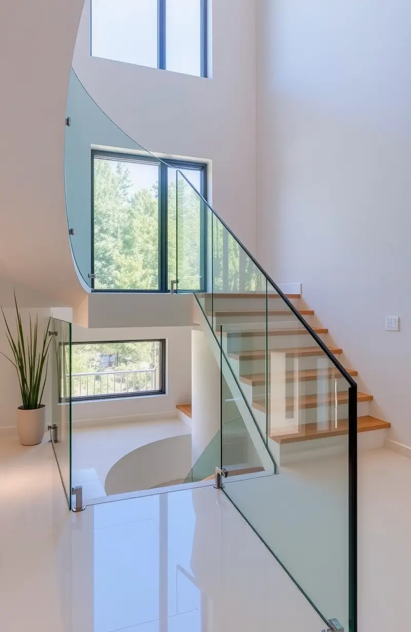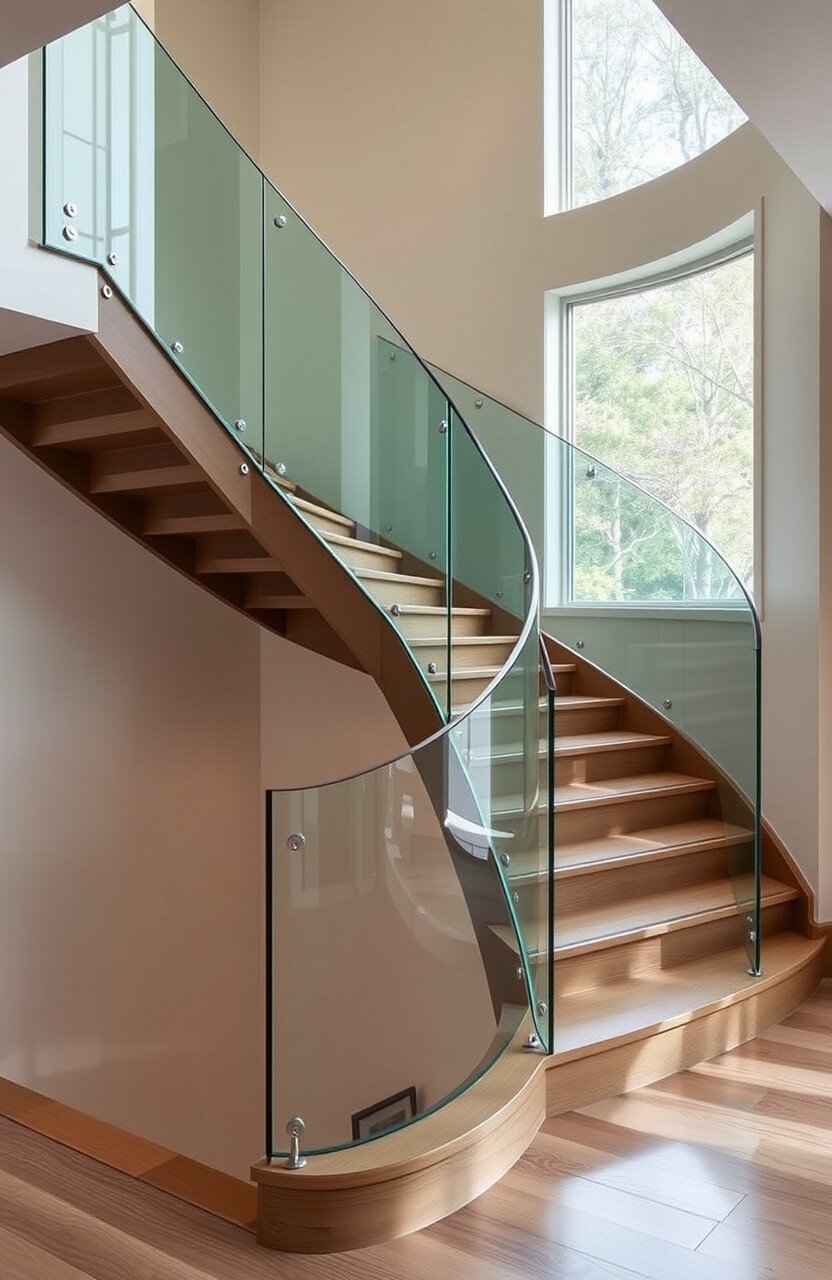 Curved glass railings bring a touch of elegance and flow to any staircase. They soften sharp angles with their smooth lines.
