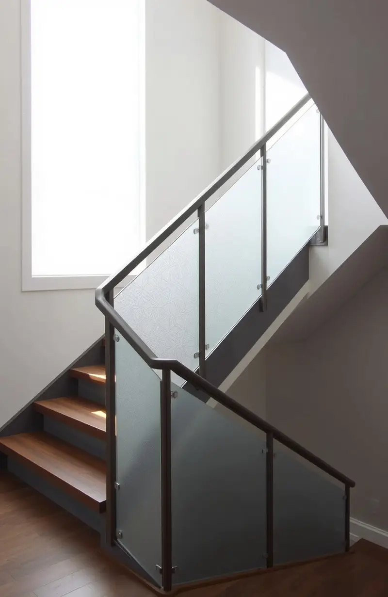 Frosted glass panels are a chic way to add privacy without sacrificing light. They give staircases a dreamy, soft look that’s perfect for modern homes.