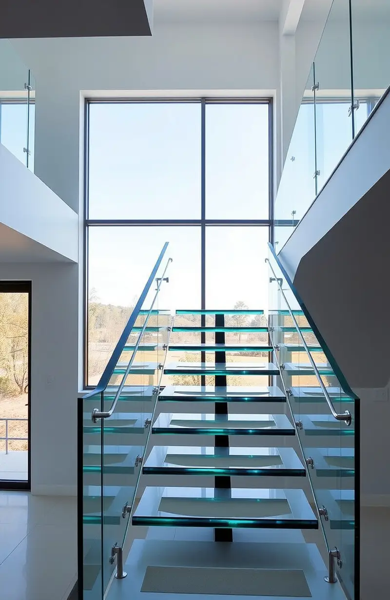 Glass railings with floating steps create a modern, airy feel. They give the illusion of steps suspended in air.