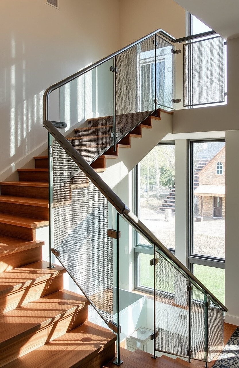 Glass railings with metal mesh inserts add texture and depth. They offer a unique twist on traditional glass railings.