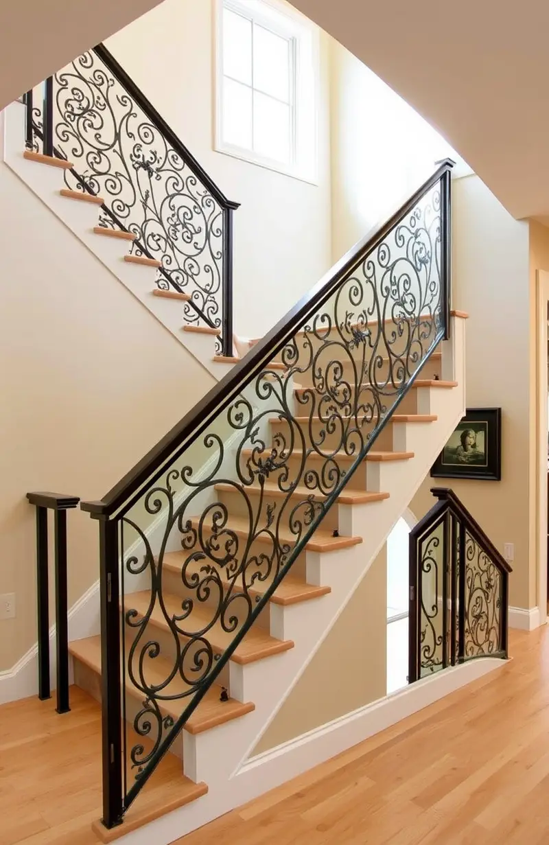 Glass railings with wrought iron inserts offer a bold, artistic look. They add character and charm to any staircase.