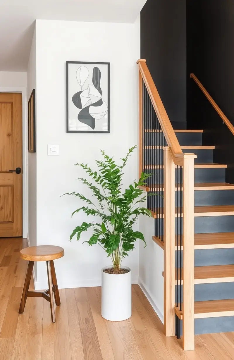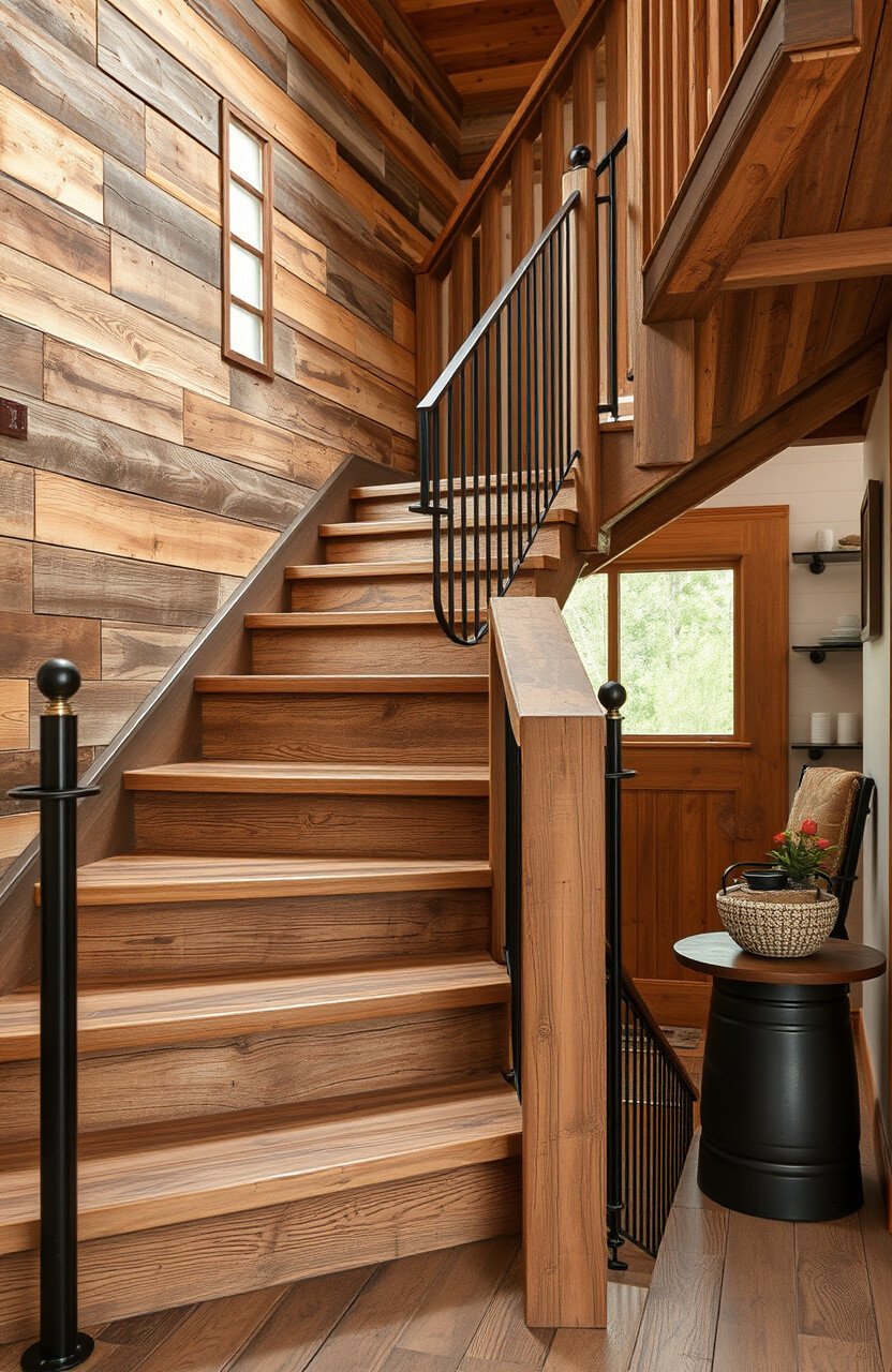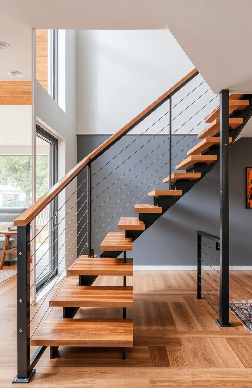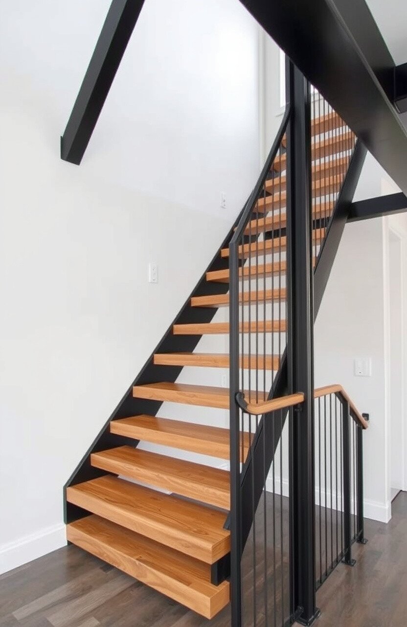 Consider using a rich wood stain for the treads to contrast the metal. This creates a sophisticated appearance.