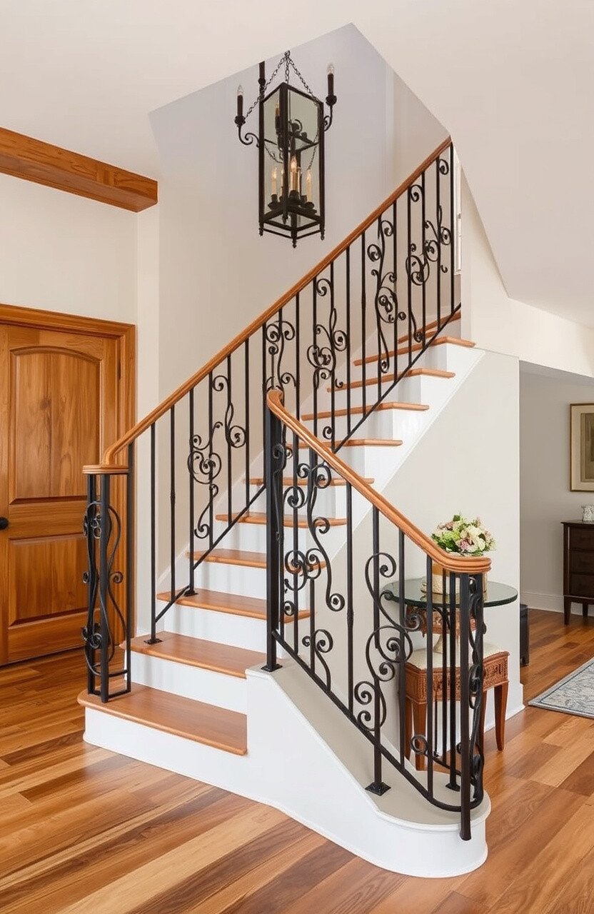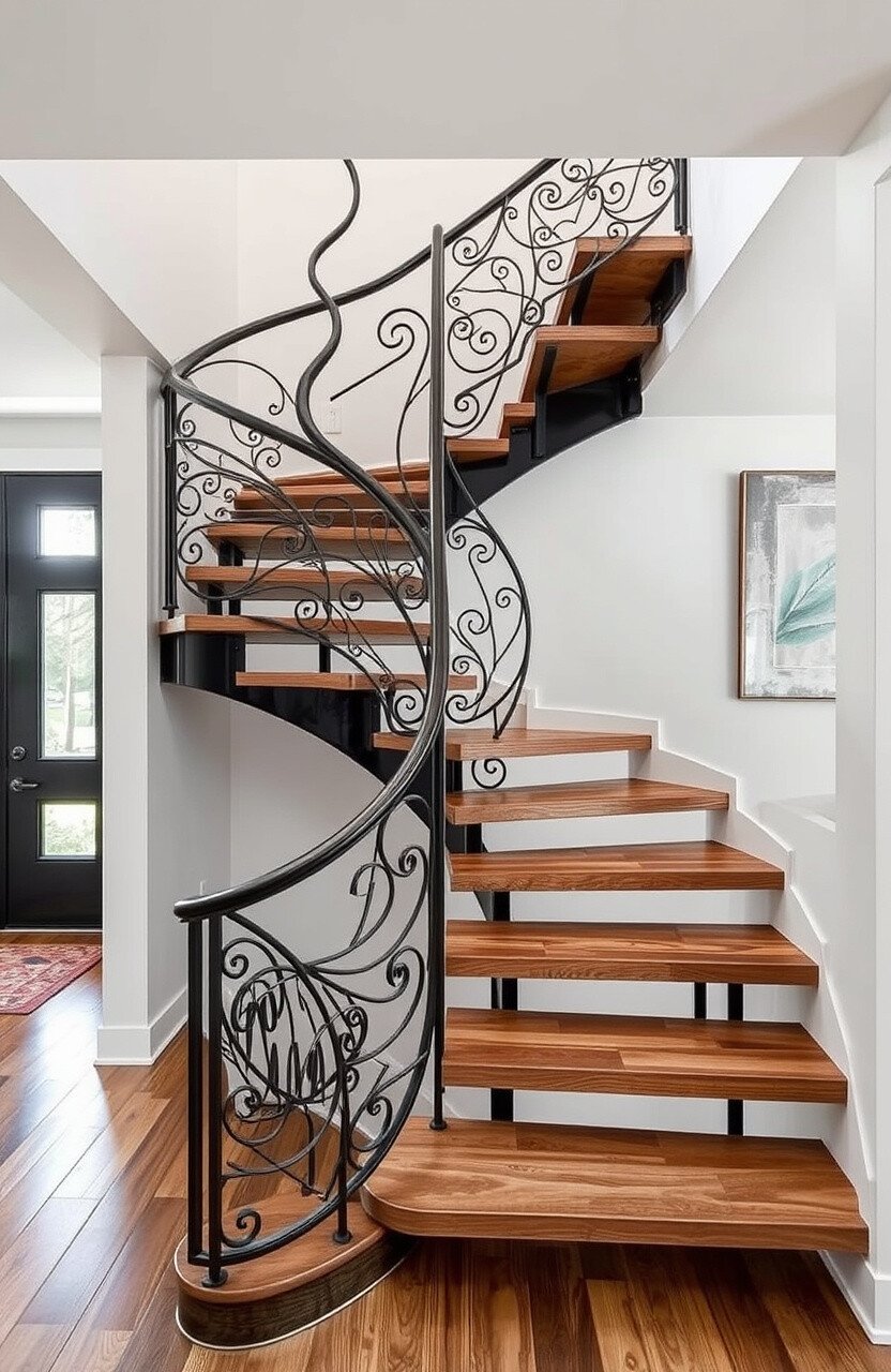 Artistic railings can turn any staircase into a work of art. Pair them with simple wooden steps for balance.