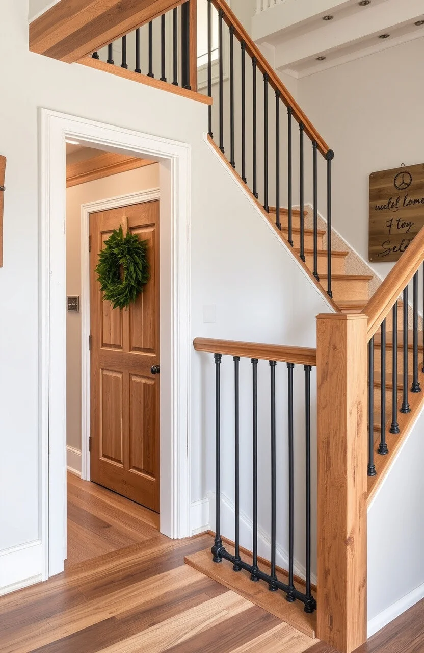 A cozy cottage vibe can be achieved with the right materials. Metal spindles paired with wood are a charming choice.