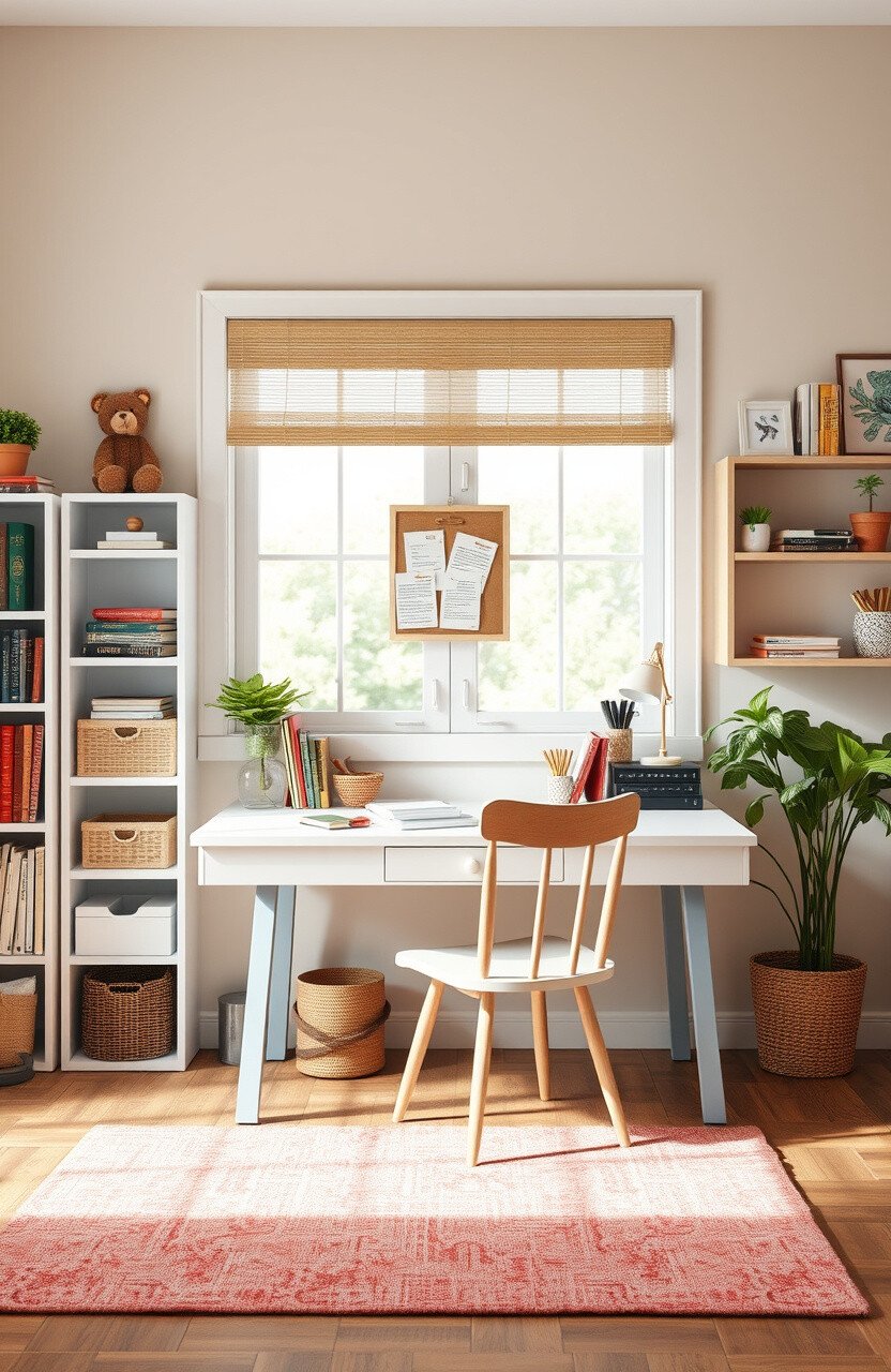 A dedicated homework desk can help with focus and organization. Keep it simple with a small desk and a chair.